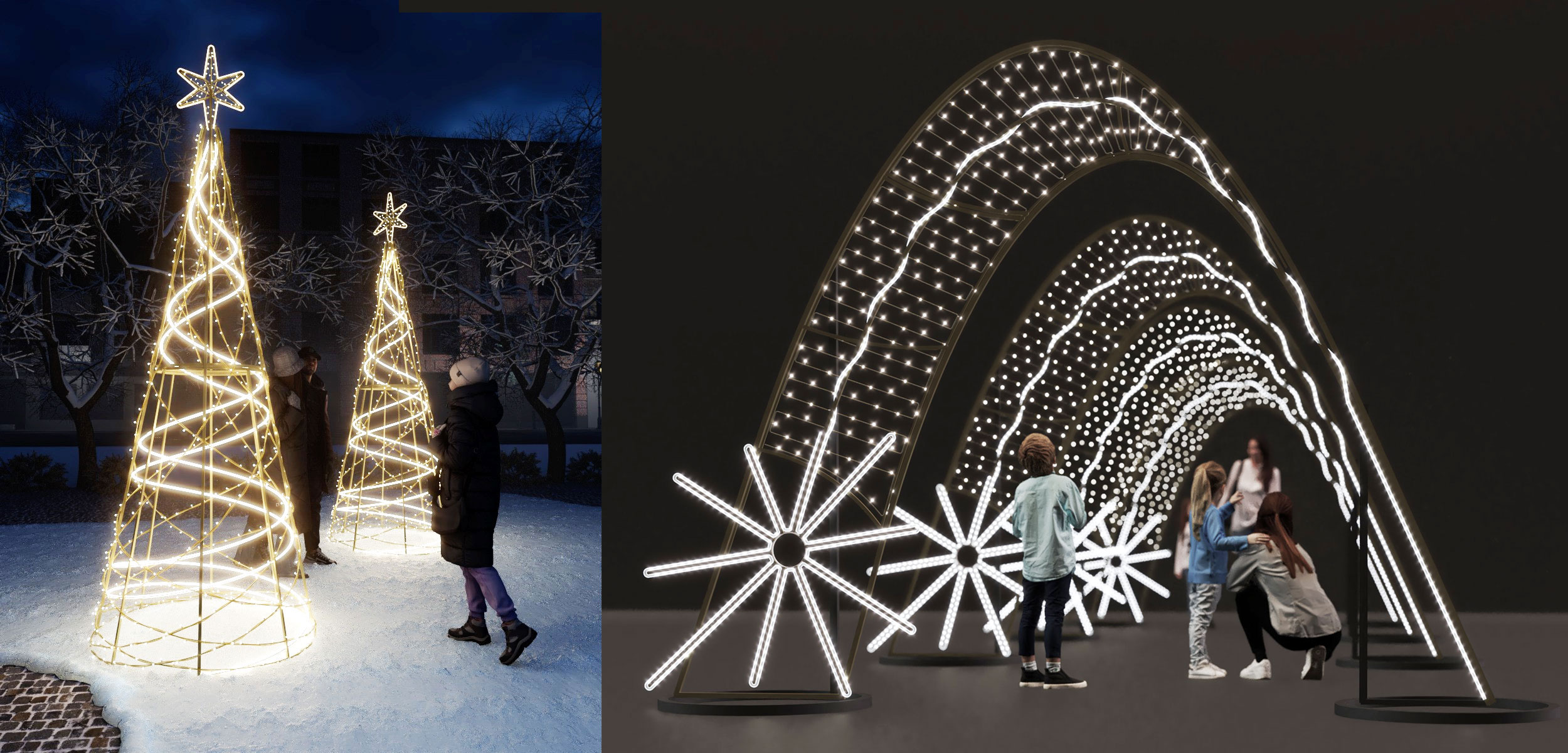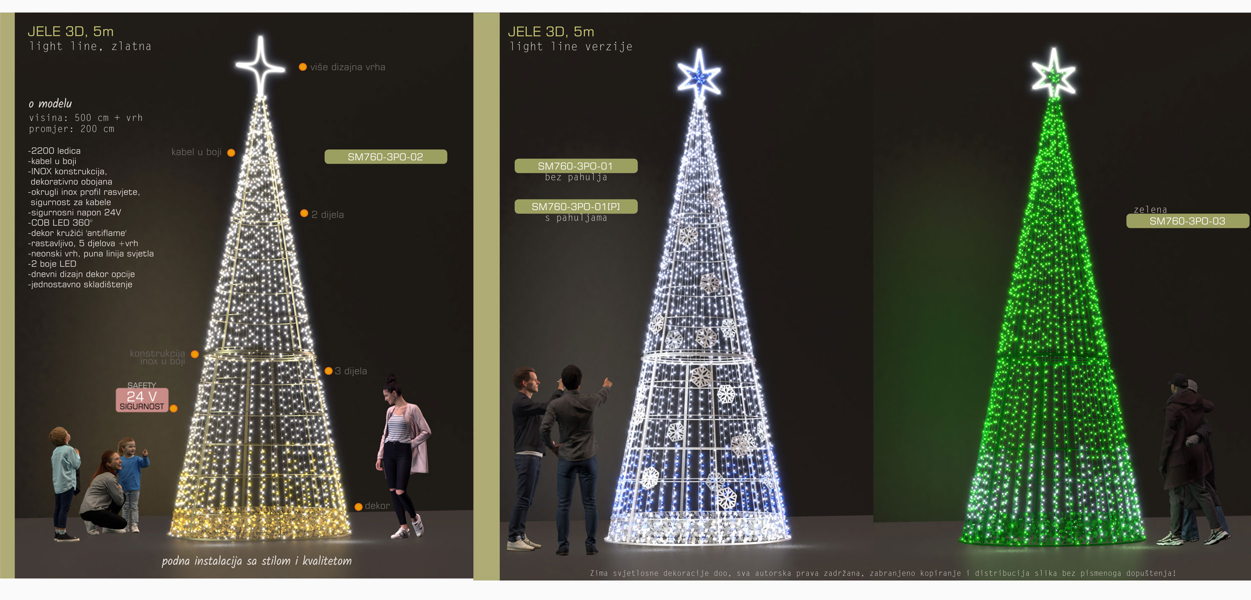 Didek u izradi, lijepa riječ!Jele 3m, 4m, 5m, 6m ... stilizirane 3D sa bogatim i gustim zelenilom nezaobilazan su dio svakog projekta božićnog ukrašavanja centralnog trga ili trgovačkog centra. Inspirirani raznolikošću prirode, koristimo razne kombinacije svjetala i dekorativnih ukrasa, te Vas pozivamo da nas počastite svojim idejama u oblikovanju vlastitih dizajna.